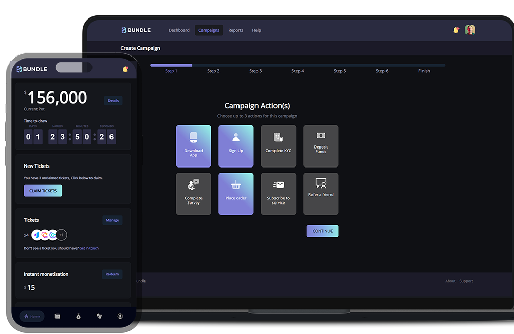 In less than 10 minutes and with just 5 easy steps you set up your participation in the universal jackpot. All campaigns can be seamlessly tracked and managed from your Bundle dashboard.